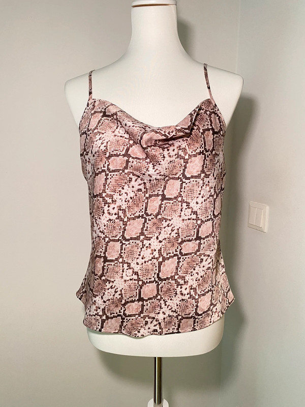 Dieses ärmellose Top von Banana Republic besitzt eine lockere Krawnen und zeigt ein Schlangenmuster in Rosa, Beige und Braun. Gefertigt aus leichtem Stoff, mit schmalen verstellbaren Trägern und looser Passform. Größe S / 36 / 8.