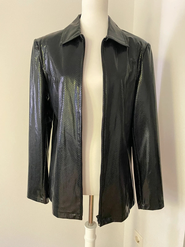 Vintage Y2K Lederoptik Jacke in Schwarz mit Glänzender Oberfläche