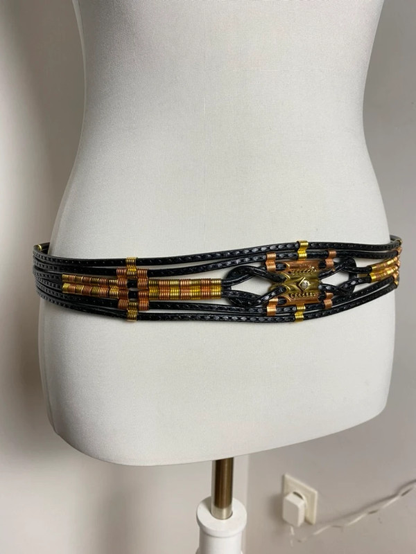 Vintage Leder Gürtel mit Metall- und Perlenverzierungen