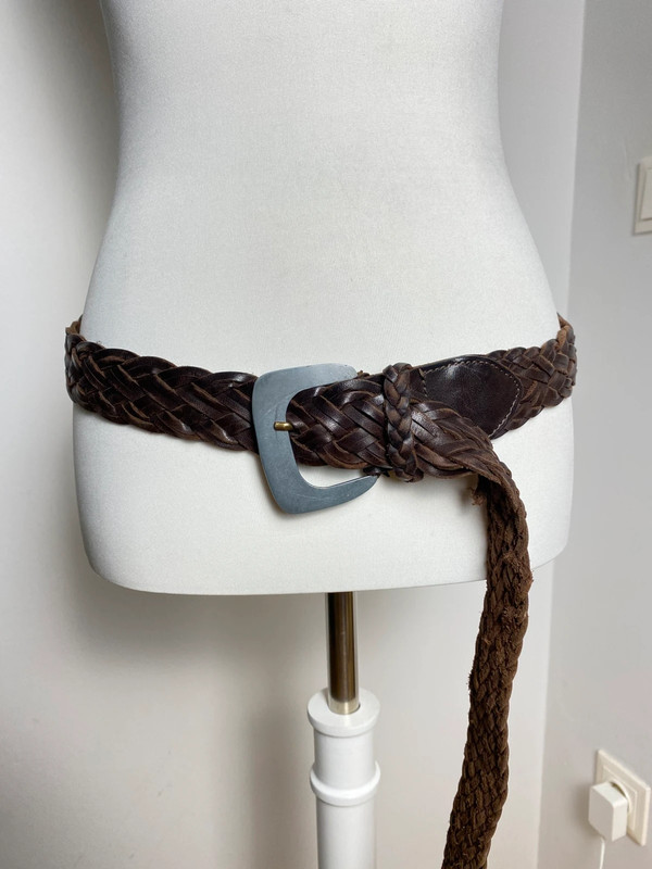 Brauner Ledergürtel mit Flechtmuster, Metall-Schließe, Größe XL. Hinweis: Innenseite hat einen Defekt, siehe Foto.