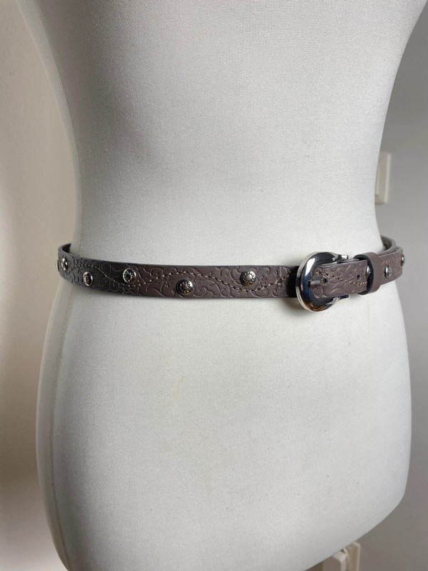 Vintage schmaler Y2K Gürtel mit Nieten, verstellbar, Braun-Grau