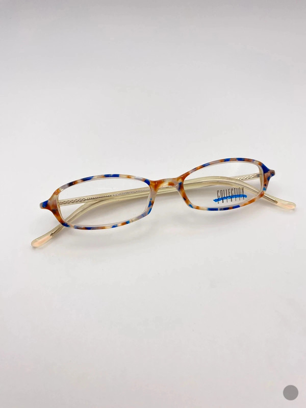 Vintage Brillengestell im Y2K-Stil aus den 2000er oder 1990er Jahren. Hergestellt aus Musterkunststoff mit einem tortoiseshell-Design. Mit Demogläsern, die beim Optiker gegen passendeGläser ausgetauscht werden können. Marke: Collection Creativ. Maße siehe Foto.