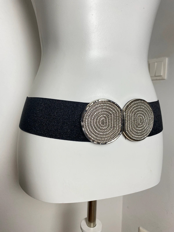 Modischer Gürtel im Y2K-Stil mit dehnbarem elastischem Bund und funkelnden Strassstein-Details auf der großen silbernen Schnalle. Breite passend für Taille 70, mit glänzendem Finish und auffälligem Design. Eignet sich als auffälliges Accessoire für lässige oder trendige Outfits.