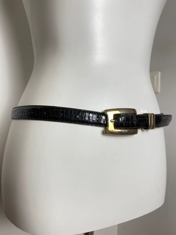 Vintage Schwarzer Faux-Leder Gürtel Schmal mit Goldschnalle