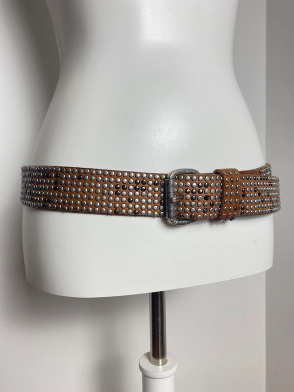 Vintage Leder Gürtel mit Metall- und Perlenverzierungen
