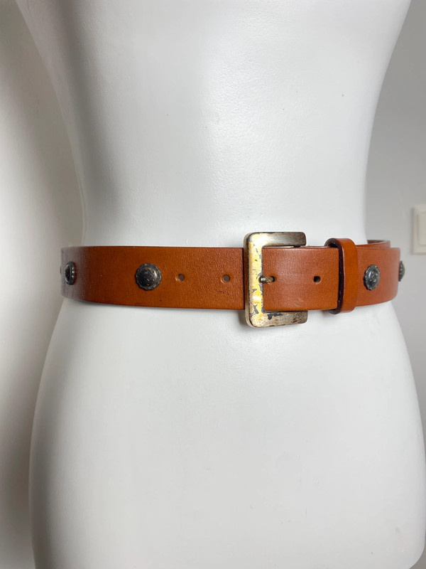 Vintage Leder Gürtel mit Metall- und Perlenverzierungen
