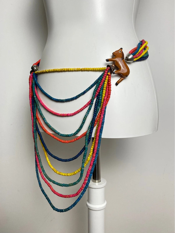 Kettenaccessoire aus bunten Perlen, das als Gürtel oder Halskette getragen werden kann. Mit einem kleinen Tieranhänger und verstellbarer Länge. Perfekt für statement-Charakter in legeren oder Boho-Looks.