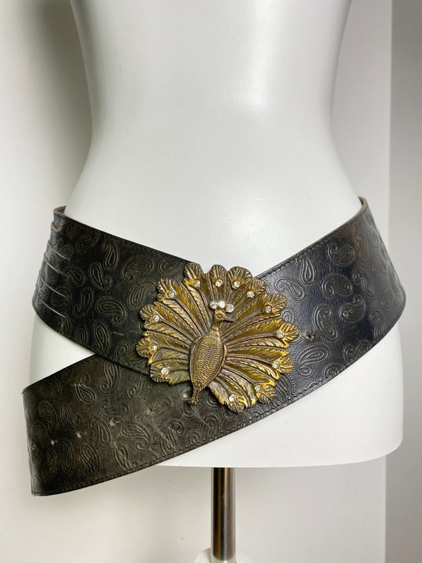 Vintage breiter Ledergürtel mit großer Pfauen-Schnalle von Vintage Love