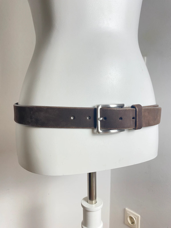 Echter Ledergürtel in Dunkelbraun mit Metallschließe und verstellbaren Löchern. Breite ca. 90 mm. Für Freizeit- und Business-Outfits geeignet.