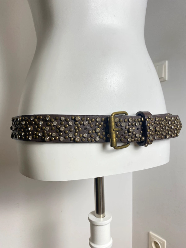 Vintage Leder Gürtel mit Metall- und Perlenverzierungen