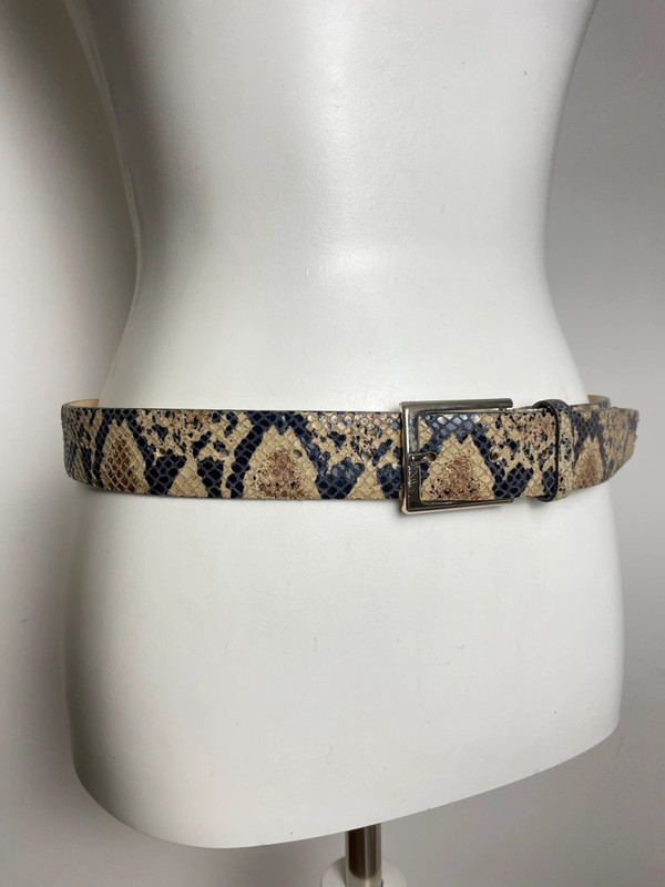 Ledergewicht mit Snake-Print in Naturfarben, ausgestattet mit silberner Schnalle. Länge 80 cm, passend für Taillen um die 80 cm, Tiermuster-Design.