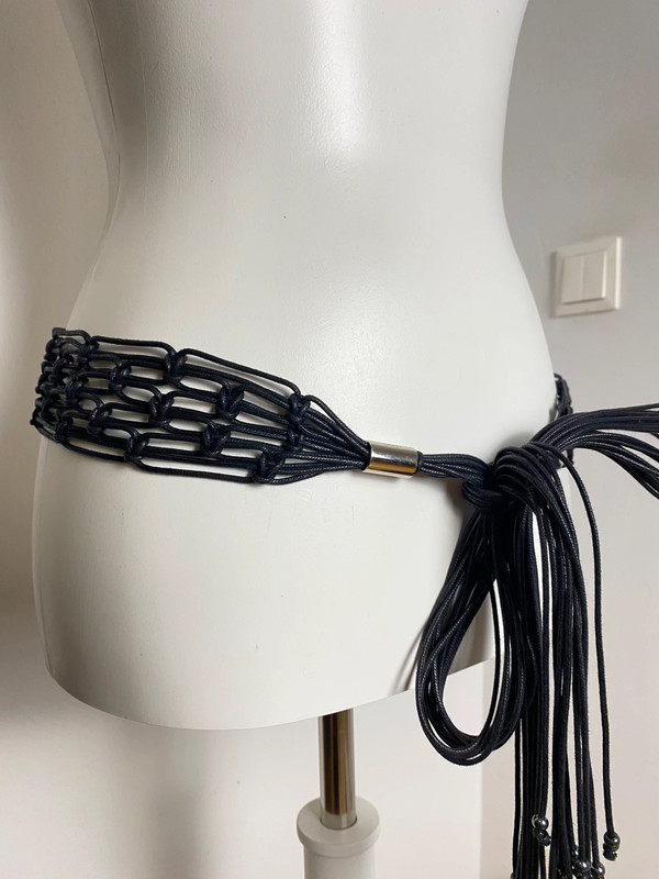 Ceinture noire ajustable de Joop! avec design bohème, franges et accents métalliques. Fabriquée en matériau synthétique avec maillons et cordons, adaptée pour un look décontracté ou festival.
