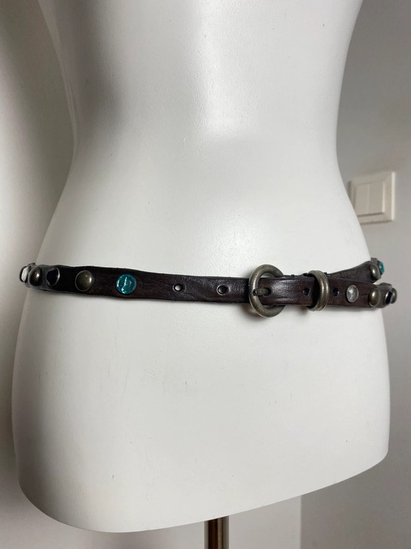 Cintura in Pelle Vintage con Mollette in Metallo e Perline